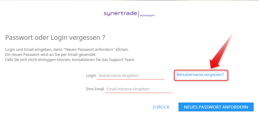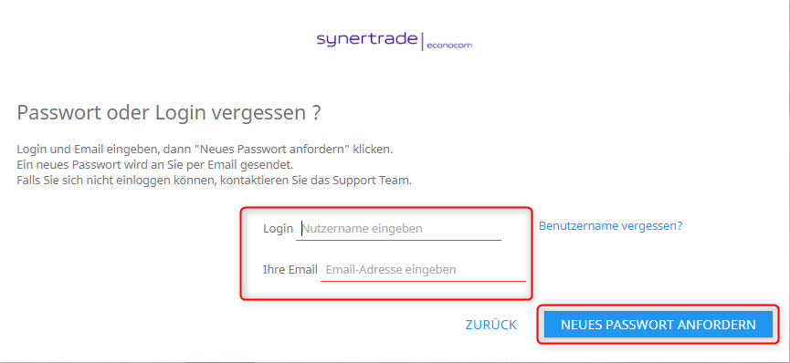 Um Ihr Passwort zurückzusetzen, geben Sie Ihr Login und die E-Mail-Adresse ein, mit der Sie sich registriert haben.