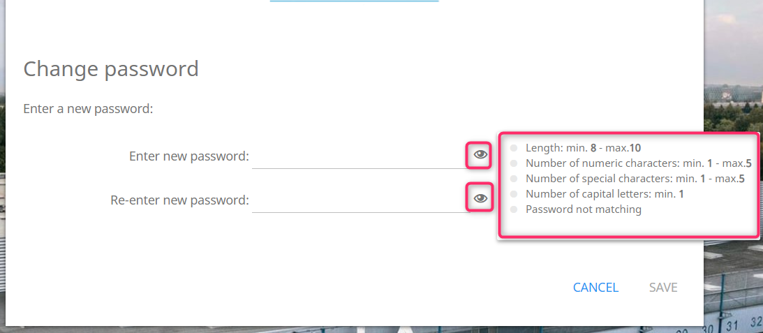 Please type in your new password again for confirmation and click on "Save" to access the platform.