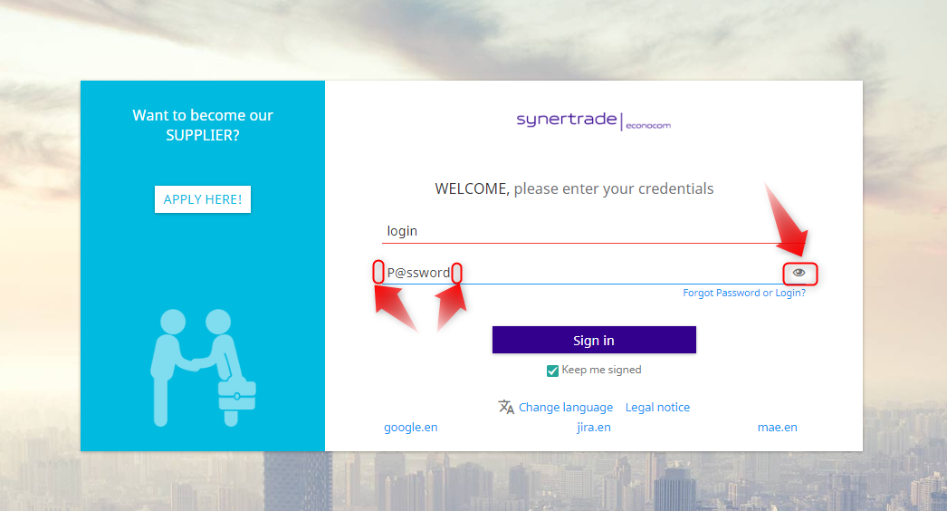 Please copy and paste your credentials carefully into the respective fields on the login page.