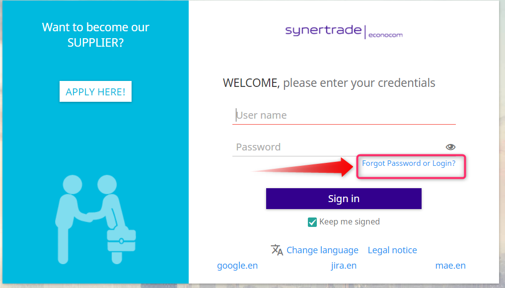 "Forgot Password or Login?" option to retrieve either or both of them.