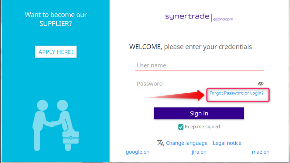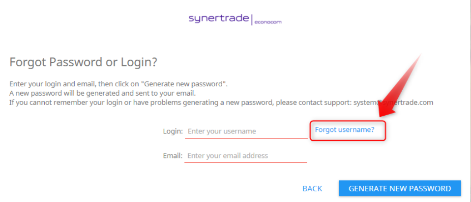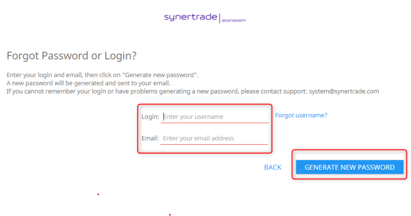 Si vous ne vous souvenez plus de votre identifiant ou de votre mot de passe, vous pouvez utiliser l'option « Mot de passe ou login oublié ? » option pour récupérer l’un ou les deux.