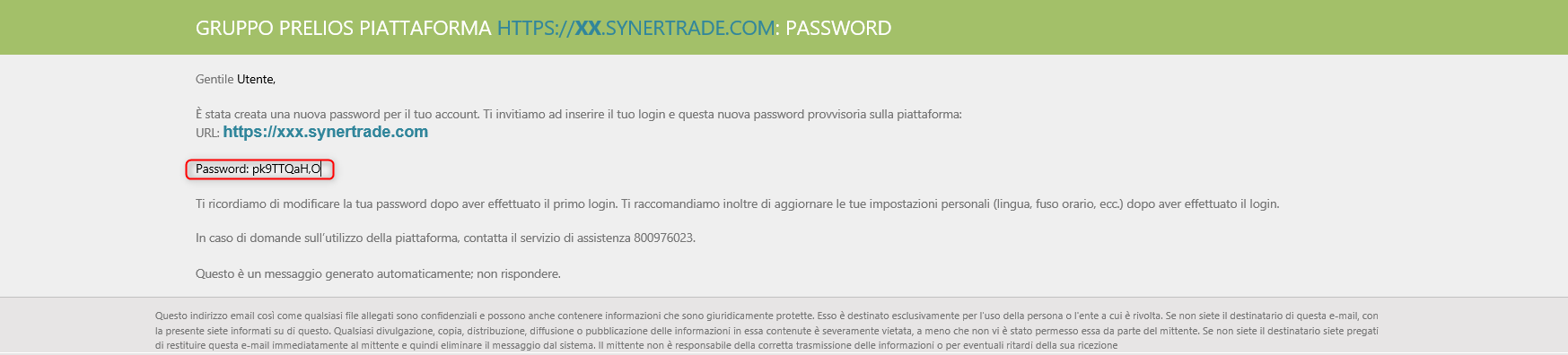 Nella seconda email riceverete una nuova password temporanea da cambiare al prossimo accesso.