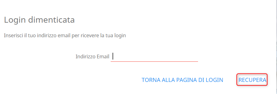 Vi verrà richiesto di inserire l'indirizzo email con cui siete registrati, quindi cliccate su "Recupera"