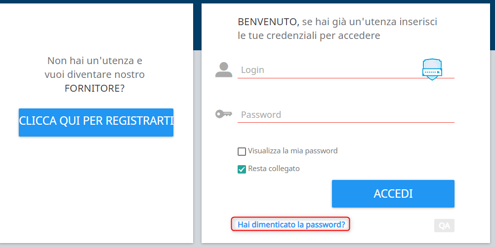 Se non siete stati invitati dal cliente ad accedere al portale e completare le informazioni nel sistema, potete utilizzare solo una volta il tasto "Clicca qui per registrarti" per registrarvi come nuovi fornitori. Se siete già registrati come ...